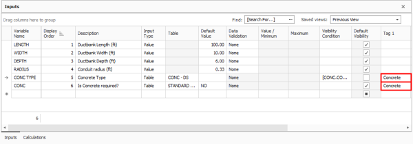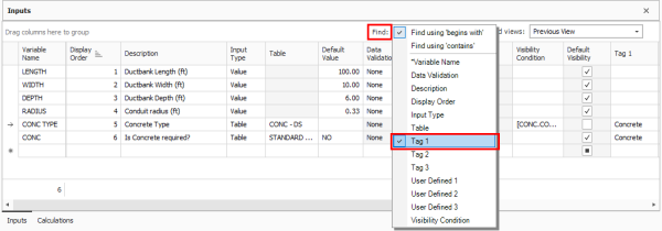 More user tags and user defined fields are available on the Cost Item Assembly > Inputs data block related to a group of variables or with other similarities. A Standard View also exists, so you can define saved views to make use of the additional tags and fields.
