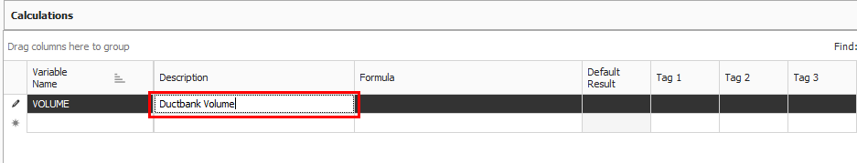 Enter the Description Ductbank Volume, then press Tab.