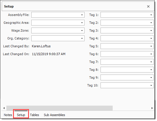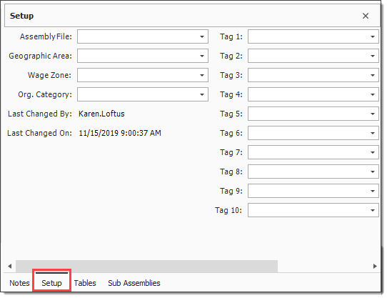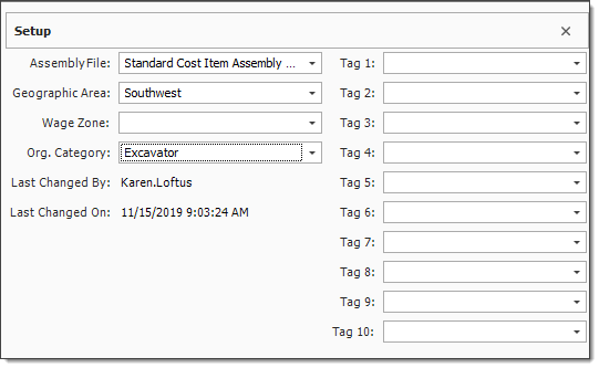 Once your Cost Item Assembly has been created, it is time to build the assembly. To begin, you first fill out the setup information, then you use the remaining data blocks to build the assembly record.
