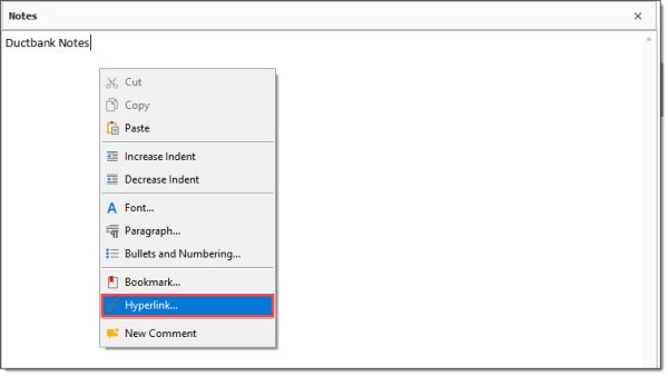 In the Notes text box, type Ductbank Notes.