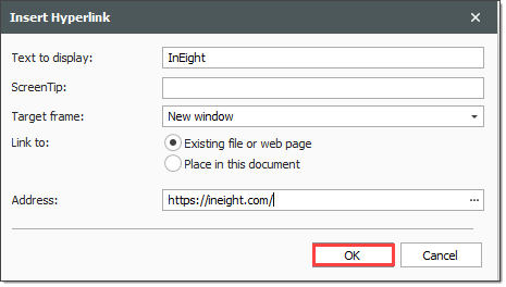 Type in a link to your SharePoint or document sharing site, then click OK.