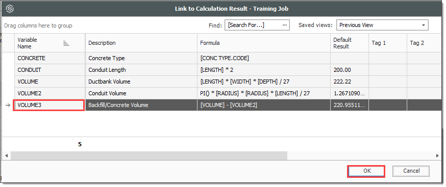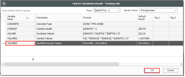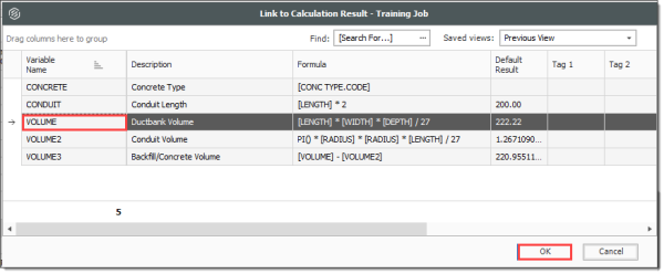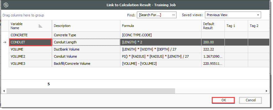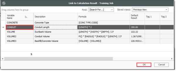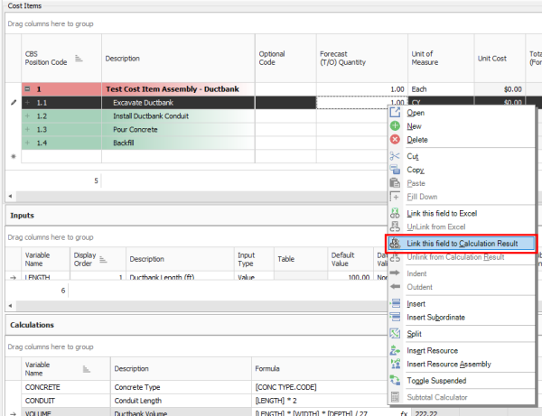 Right click on the Install Ductbank Conduit Forecast (T/O) Quantity field and select Link this field to Calculation Result.