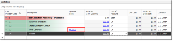 In the Description field, type Test Cost Item Assembly - Ductbank.