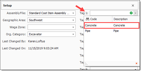 In the Tag 1 drop-down, select Concrete.