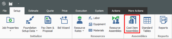 From the Setup tab, click on Cost Item Assemblies.