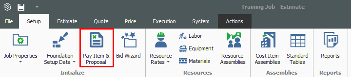 Open your job and select Setup tab >Pay Item & Proposal from the InEight Estimate landing page.