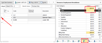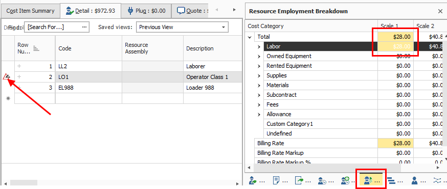 This same identifier will show up for resources as well, if you make changes to the employed resource’s cost to be different than the original resource rate imported from the Resource Rate Register.