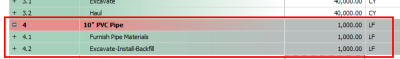 On the CBS Register, the cost item you edited now has a Unique Identifier in the row header indicating the cost item was altered from the default values set in the project job properties or in the project library of resources rates.