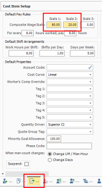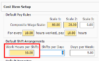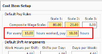On the data block where the Production tab was found, there is also a Cost Item Setup tab where you can adjust wage scale and shift arrangements for a specific cost item.