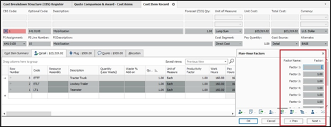 You can apply Man-Hour Factors to multiple cost items at once by Multi-Editing selected cost items on the CBS Register.