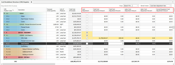 A new Saved view called Cost Item Adjustment View has been added to the Cost Breakdown Structure.