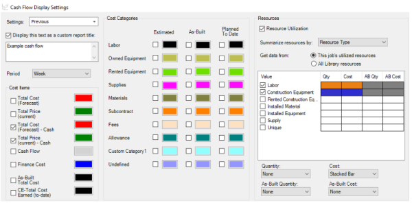 The Cash Flow Display Settings allow you to control what information displays on the Cash Flow graph.
