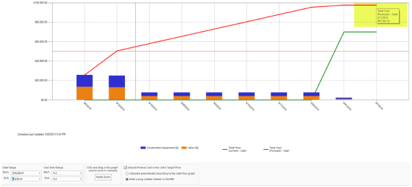 All cost curves, regardless of type, impact the generation of the cash flow graph. The Cash Flow form provides a graphical representation of the cash flow and resource utilization of your project, so you can quickly assess financing and resource needs.