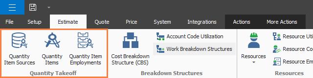The Quantity Takeoff section facilitates a seamless process of importing quantity takeoff data. You can import and manage the data using the Quantity Item Sources, Quantity Item, and Quantity Item Employments registers.
