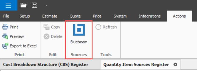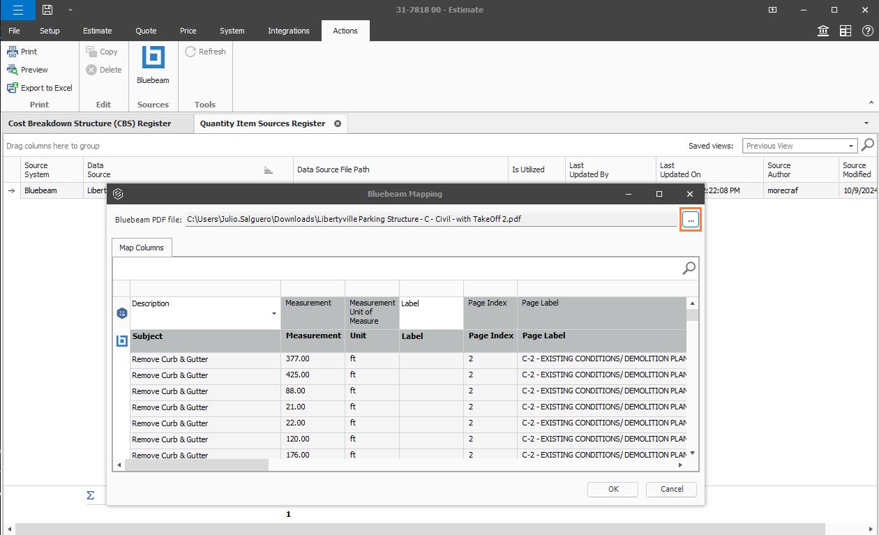 In the Quantity Item Sources Register, you can use the source application to select, map, and import quantity items.
