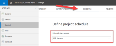 Under Schedule data source, select XER file type.
