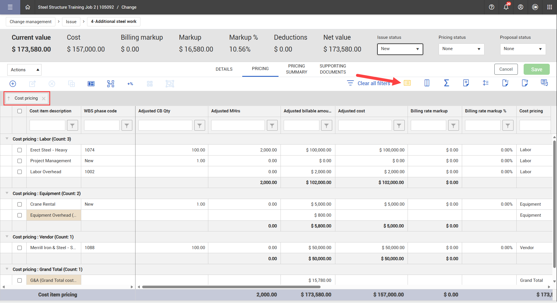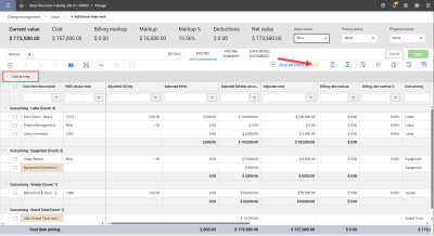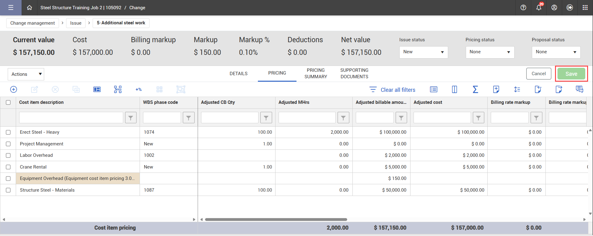 In InEight Change, you can add pricing to the issue either using estimated costs on existing cost items or by adding new cost items. You can indicate which cost items are vendor-related, and you can add multiple levels of markup for overhead and profit as needed.