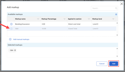 If you have configured markups available, select the appropriate markup, and then click Add.