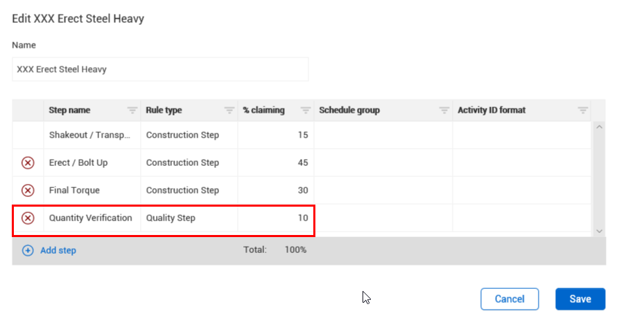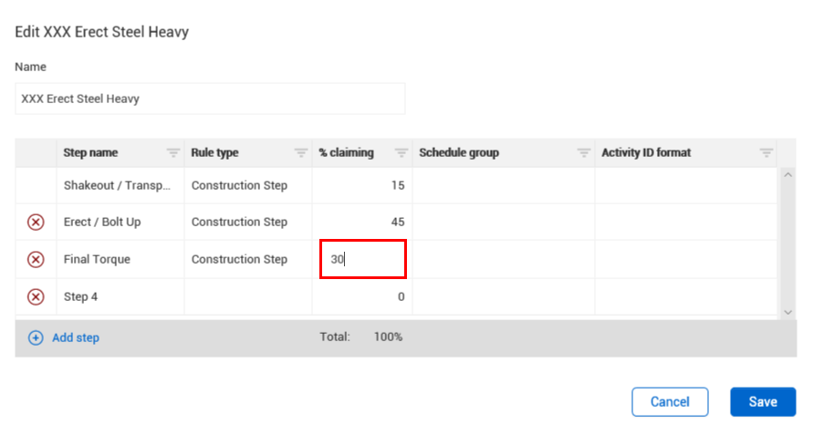 You cannot save a claiming scheme if your steps' percentages do not add up to 100%.