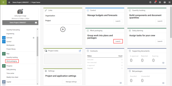 From your project home page, navigate to Plan > Work packaging.