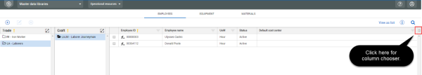 To view or edit cost center associations for an operational resource employee or equipment, from the Main menu select Master Data Libraries > Operational resources.