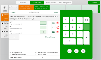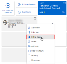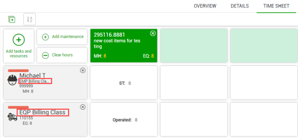 Override billing class (web and mobile – compatible with web version 21.10) – You can temporarily change the billing class of employees in a daily plan’s time sheet. This feature is useful when performing work considered an alternative to your default billing class.