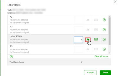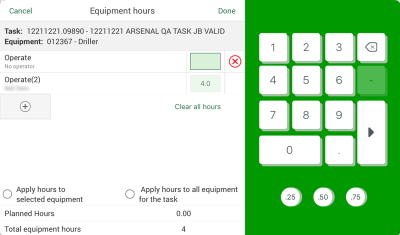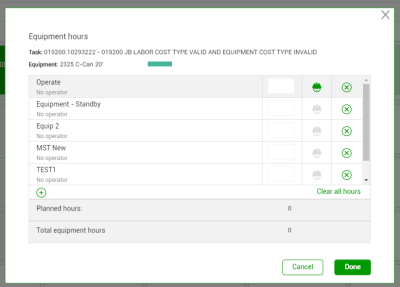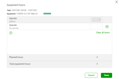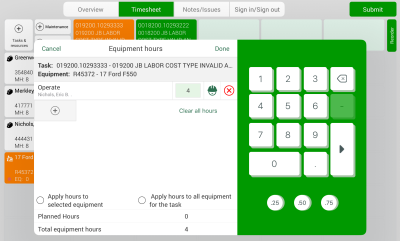 Apply to selected equipment (mobile only) – You can now select a group of equipment on a daily plan and assign hours. This functionality was previously available only for employees.