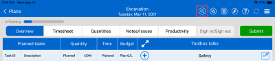 Planned and claimed task and component indicator - An icon now appears in the Quantities tab of a daily plan when a task or component is planned or claimed. The icon surfaces against the WBS and against the component. This eliminates time wasted scrolling through a long list of tasks and components, giving you a visual indicator of what is planned and installed.