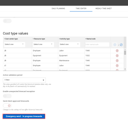 Bulk emergency send – A new option lets you resend all time cards on all projects that are in progress in case of integration failure.