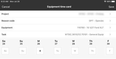 Employee-Equipment linking (web and mobile - compatible with web version 21.1) – You can use different labor reason codes in combination with the operate (OPT) equipment reason code for linked time cards.