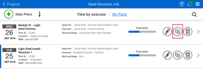 1. From the list of daily plans for your project, tap on the Copy icon to make a copy of an existing plan. The Copy daily plan dialog box opens.