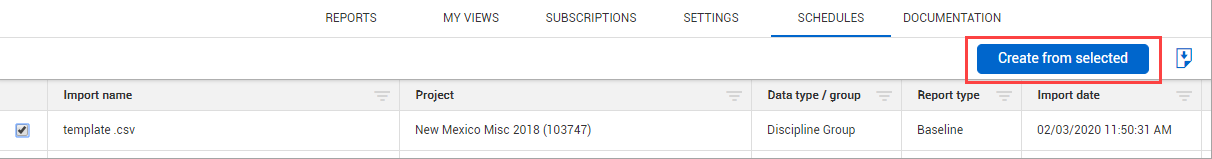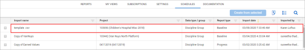 • After your import finishes successfully, you will be redirected back to the Schedules tab.