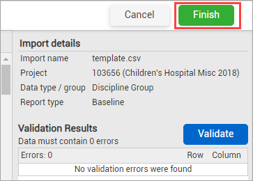 Reports will only reflect the most recent import for each import type [Baseline/Progress, and Account Code/Commodity/Discipline Group].