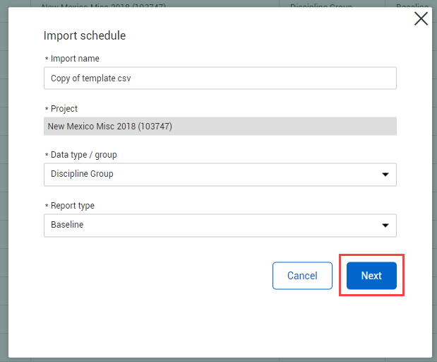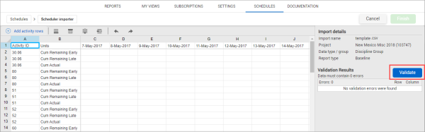 2. If importing a Primavera P6 file (or any other schedule in the specified format), select Import from.csv.