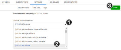 The Time Zone can be selected or altered by selecting an option from the drop-down list.