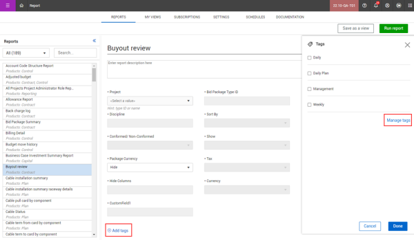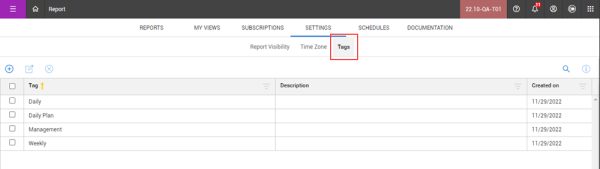 You can create customized tags to help you quickly identify or group certain reports that have the same tag attached. Attach tags to individual reports for easy sorting and filtering. Click Settings > Tags to view all tags that you have created.
