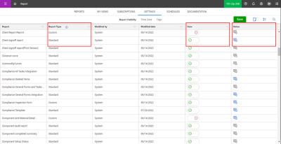 View - The toggle lets you choose whether to show or hide a report in the list. The default for setting is to show the report.