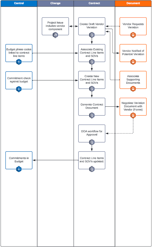 This workflow walks through variations in how contracts can be managed post-award using the InEight Suite.