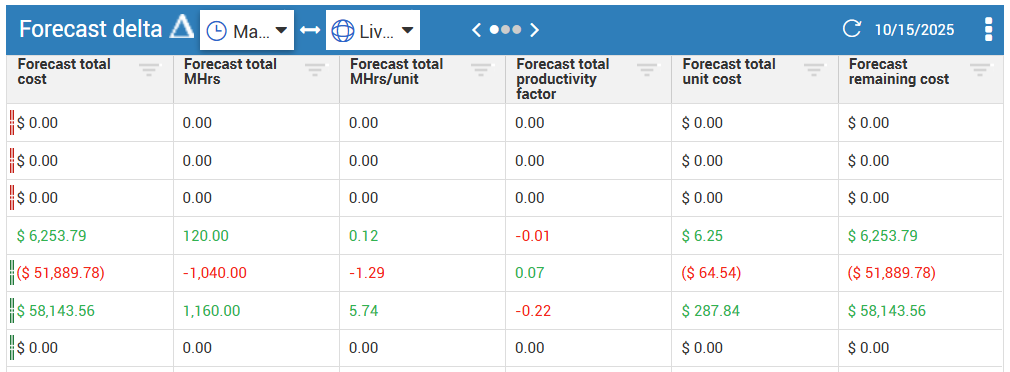 Refresh from live Overwrite forecast values with the Live forecast values on selected cost items.