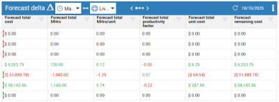The Forecast delta data block displays any deltas between the selected forecasts.