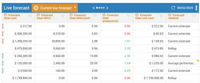 • Live forecast – displays the official project forecast.