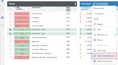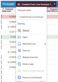 Push to Shared forecast Overwrite values in a shared forecast with values from this forecast for selected cost items. See below for more details.