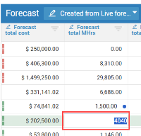 Access the Live forecast data block to view official project forecast values. Users with the correct permissions can make updates directly in the data block.