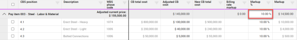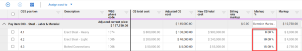 Alternatively, you can add markup at the pay item level, and it will override the markup for all the assigned cost items.