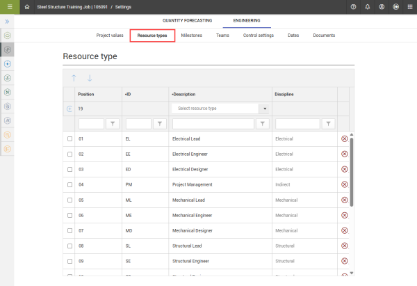 You can manage resource types for your project in settings > Design > Engineering > Resource types.