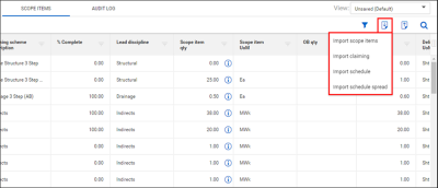 On the Scope items page, click the Import icon, and then select Import claiming.