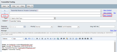 Generally Unregistered Mail is delivered back into InEight via a company or department Unregistered mailbox where it is accessed by an administrator for processing. However, if the Unregistered Mail is a response to InEight Mail it may return directly to the originator’s personal Unregistered Mailbox.