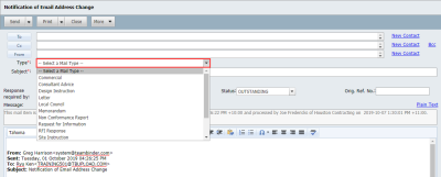 Select who the Mail was FROM. If the “From” person cannot be located, use the New Contact link to add them to the system.