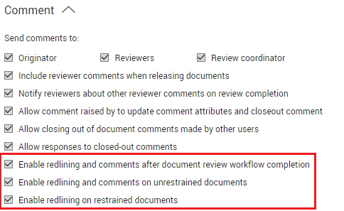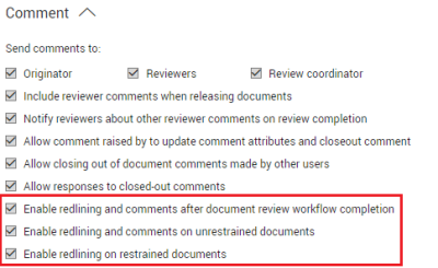 All comments and redlines made by reviewers belonging to the company during workflows.