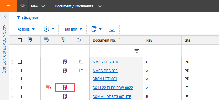 To view the archive, click the Documents tile in the dashboard left navigation pane. A Documents register opens. The register shows every document that was in the project at the time of export.